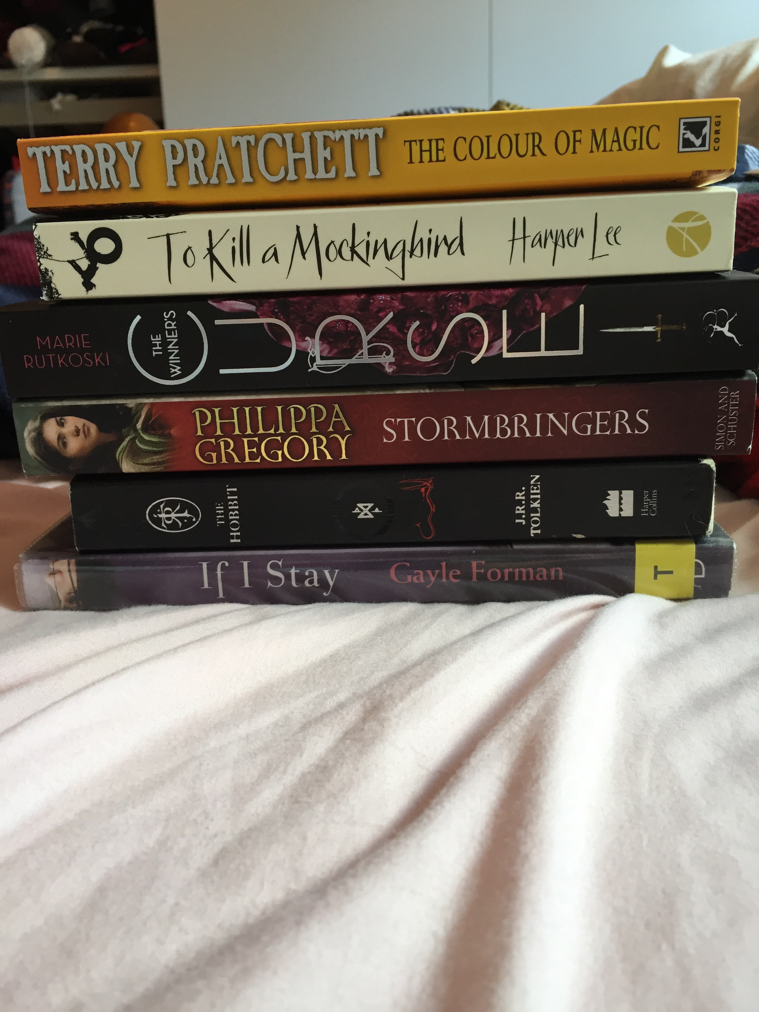 Well this is a very last minute post as I have only just decided that I am going to attempt to participate in the BooktubeAThon 2016! I have never done a readathon, so this will be a brand new experience for me, but as its looking like I’m going to be off work again tomorrow, that give me plenty of time to read- with the exception of Friday and Sunday. I have formed this TBR following the reading challenge that have been set, however I do highly doubt I will get through them all….So the first challenge is ‘Read a book that has yellow on the cover’. For this I have chosen Terry Pratchett’s ‘Colour of Magic’, as nearly the whole cover is in fact yellow.